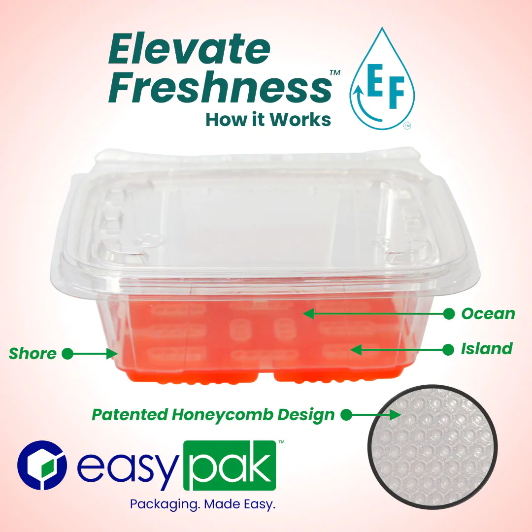 The solution to your moisture-caused product freshness issues is finally here. Meet Elevate Freshness®. At the heart of Elevate Freshness® lies a revolutionary design that redefines freshness for your fresh-cut and freshly-prepared fruit and produce products. We understand the challenges posed by liquid, purge and residual moisture in your fresh food products which can lead to degradation and reduced quality over time. Elevate Freshness® is your engineered solution to combat these issues and allow customers to taste the difference in every bite.
