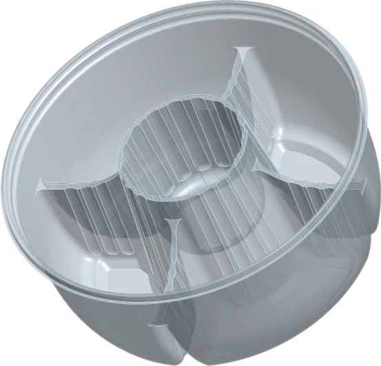 72 oz. clear, PETE, 9″ round bowl with 4 cells.