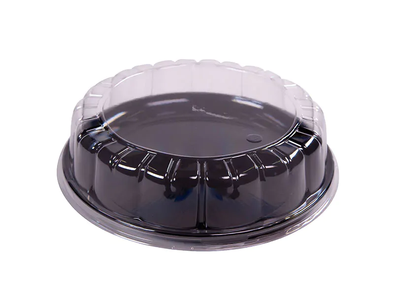 9″ party tray, combo pack black base and clear lid.