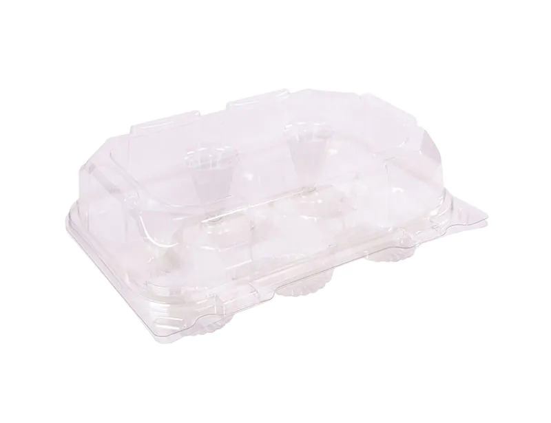 Clear, PETE, 6 compartment cupcake clamshell container.