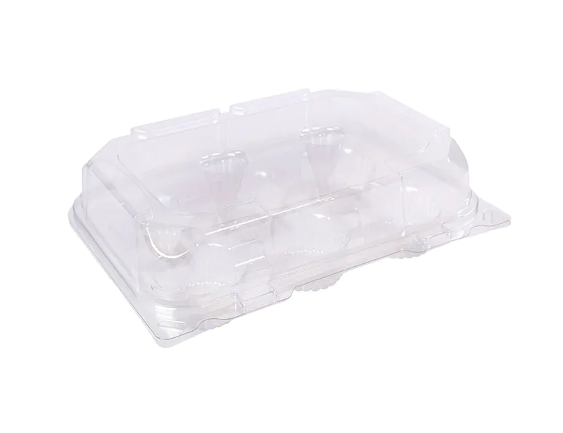 Clear, PETE, 6 compartment muffin clamshell container.