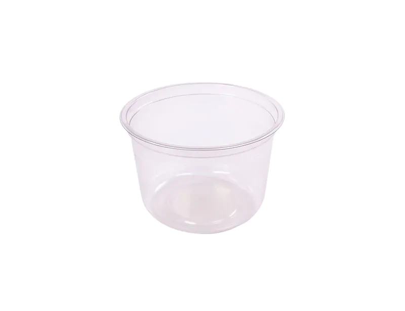 37.2 oz. volume to overflow, clear, PETE, round container with film seal capabilities.