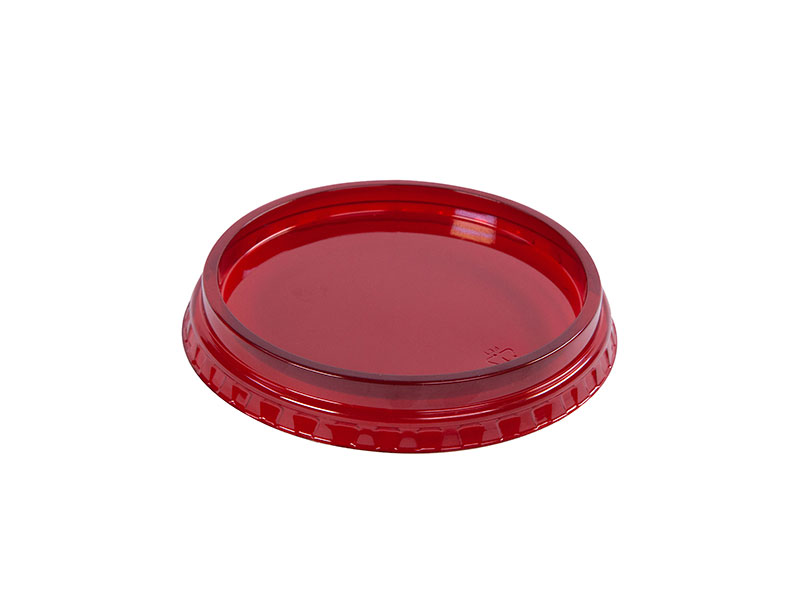Clear, PETE, 4.5″ flush lid with various colored rims, film seal capabilities.