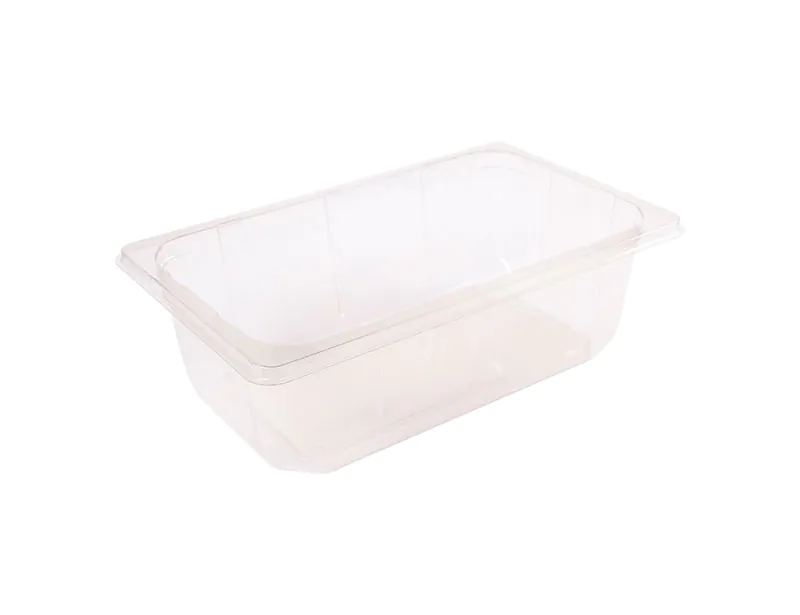 This 80 oz. rectangular container is perfect for your salads, mixed greens, and fresh fruit. The clear container measures 10” long, 6.25” wide, and 3.5” high. This rectangular plastic container is made from crystal-clear APET, is food-safe, and features a wide flange for film seal capabilities. Pair it with the LRC80 lid. With the Fresh-Lok line of superior technology, your products will stay securely locked and fresh—all while looking their best on the shelf in crystal-clear plastic.
