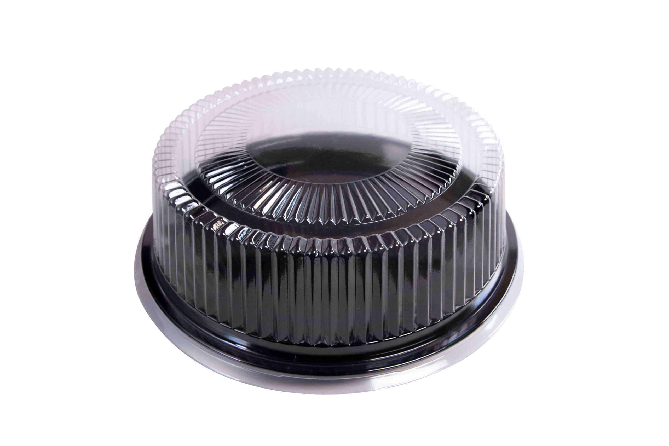 Combo pack 12″ Stakmate black tray with 3.25″ clear dome lid