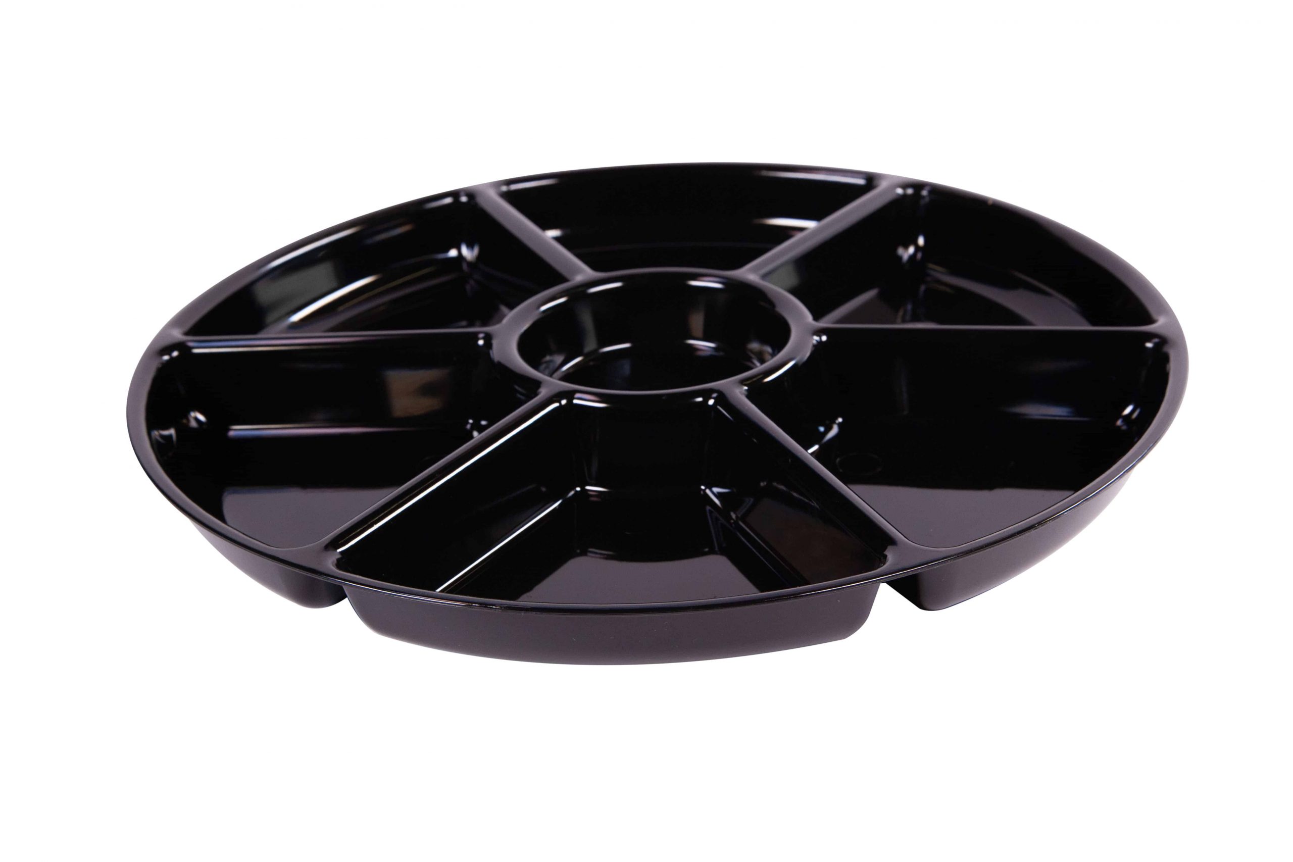 Black, PS, 12″ round 6 compartment Stakmate platter