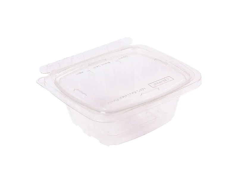 This 12.1 oz. rectangular hinged clamshell is perfect to store your fruits, veggies, candies, and whatever else you desire. This clear container measures 5.48″ long, 4.89″ wide, and 2.0″ high and comes with a flat lid attached. It’s made from clear APET and features out tamper-evident technology for the ultimate in freshness and security. These unbreakable, stackable containers are the perfect combination of clarity and strength. The Pro-Lok line of clamshells provides the ultimate security and strength while showcasing and maintaining the freshness of deli snacks and products with outstanding clarity.