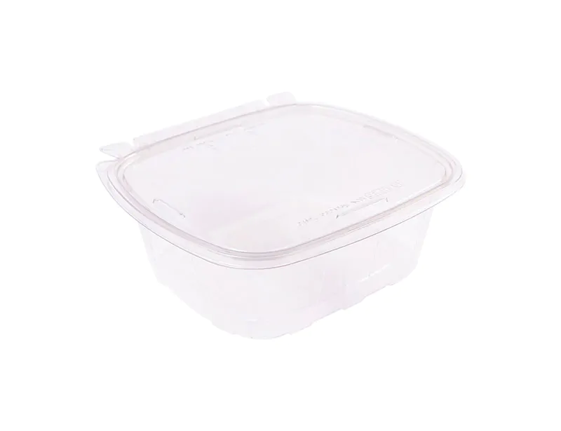 This 64 oz. clear, rectangular hinged clamshell is perfect for tender leaves, greens, and salad. This clear container measures 9.01″ long, 7.98″ wide, and 3.00″ high and comes with a flat lid attached. This clamshell is made from APET and features not only venting for ultimate freshness for your greens, but also tamper-evident technology to keep your products secure. The Pro-Lok line of clamshells provides the ultimate security and strength while showcasing and maintaining the freshness of deli snacks and tender leaf products with outstanding clarity.